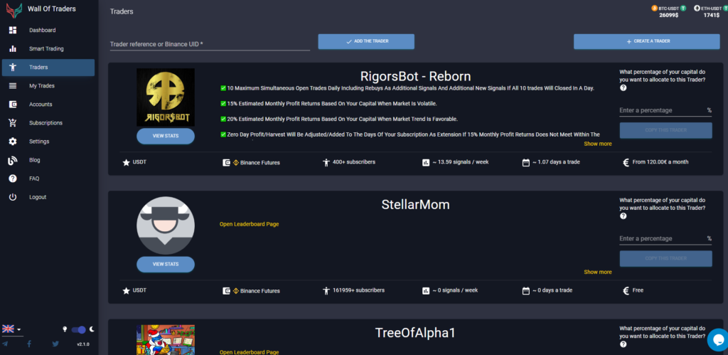 • That’s it! You can now follow the trades of the top Binance Leaderboard traders on Wall Of Traders. If you use a Binance account created after March 2020 without sponsorship, the service is 100% free.
