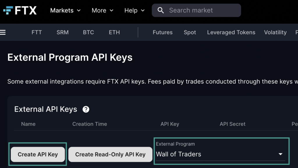 Let’s see how to create an API Key on FTX that will be usable on Wall Of Traders.
